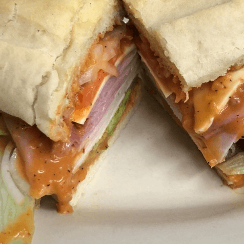 Paying homage to a favorite from an old local hotspot, the "Black & White Tavern" Turkey, ham, American lettuce, tomato, onion and of course the famous Black & White sauce.