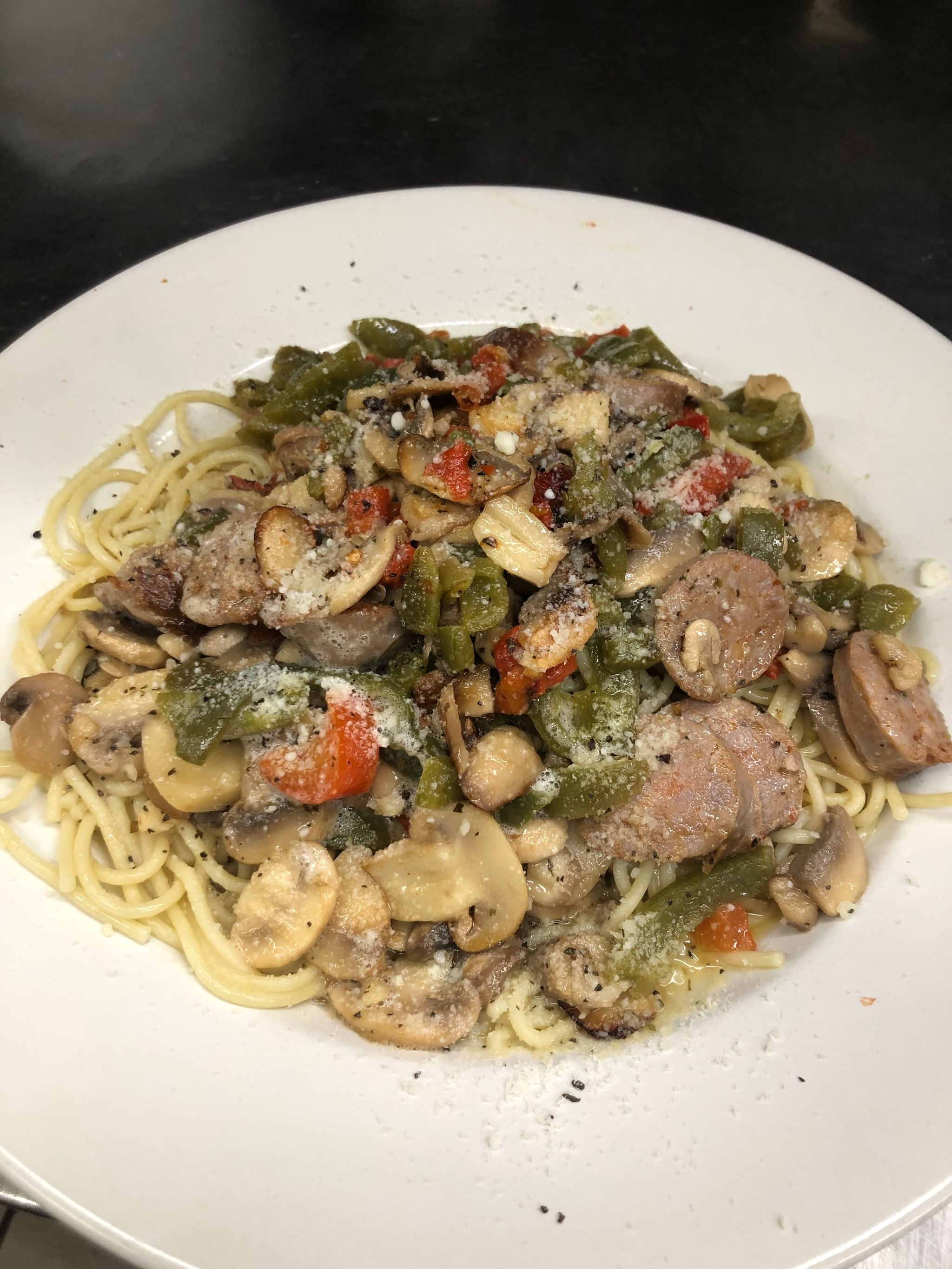 Sausage, mushroom & sweet pepper